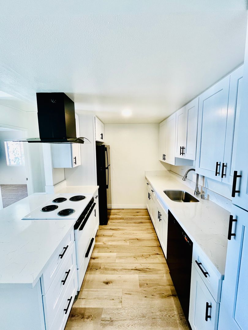 The fully remodeled kitchen is a standout feature, showcasing custom cabinetry, new granite countertops, and brand-new kitchen appliances, all designed to provide both style and functionality with ample prep and storage space.