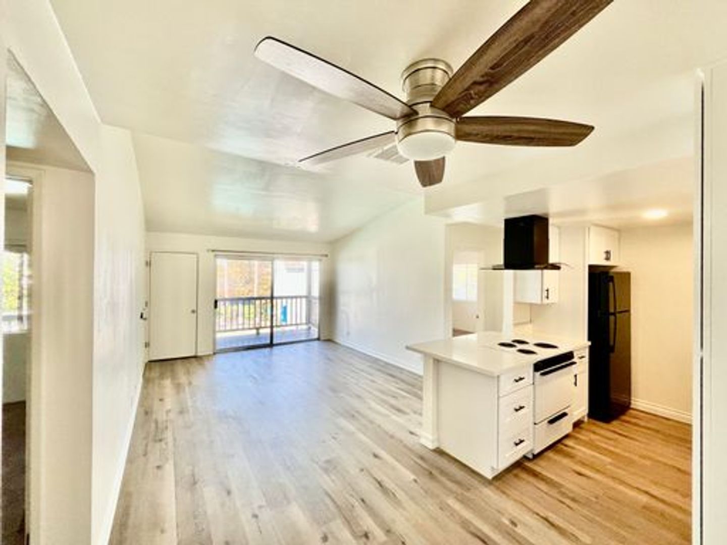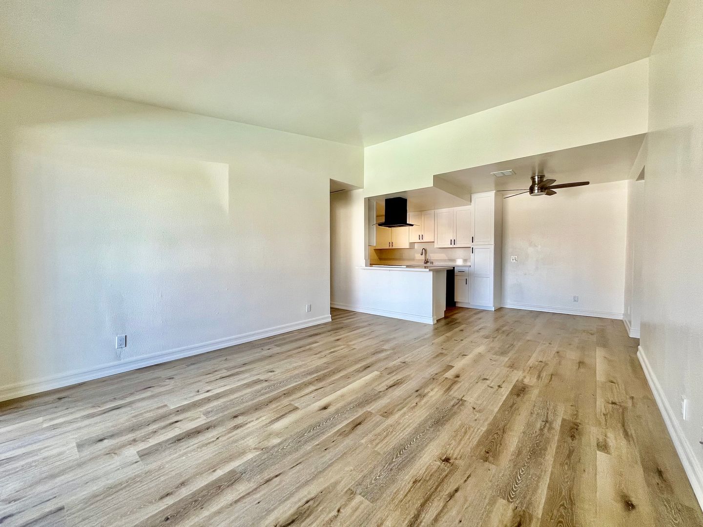 Spacious, newly remodeled upstairs 2-bedroom, 2-bath apartment with a bright open-concept layout, fresh interior paint, new laminate flooring throughout, and brand-new carpet in both bedrooms.