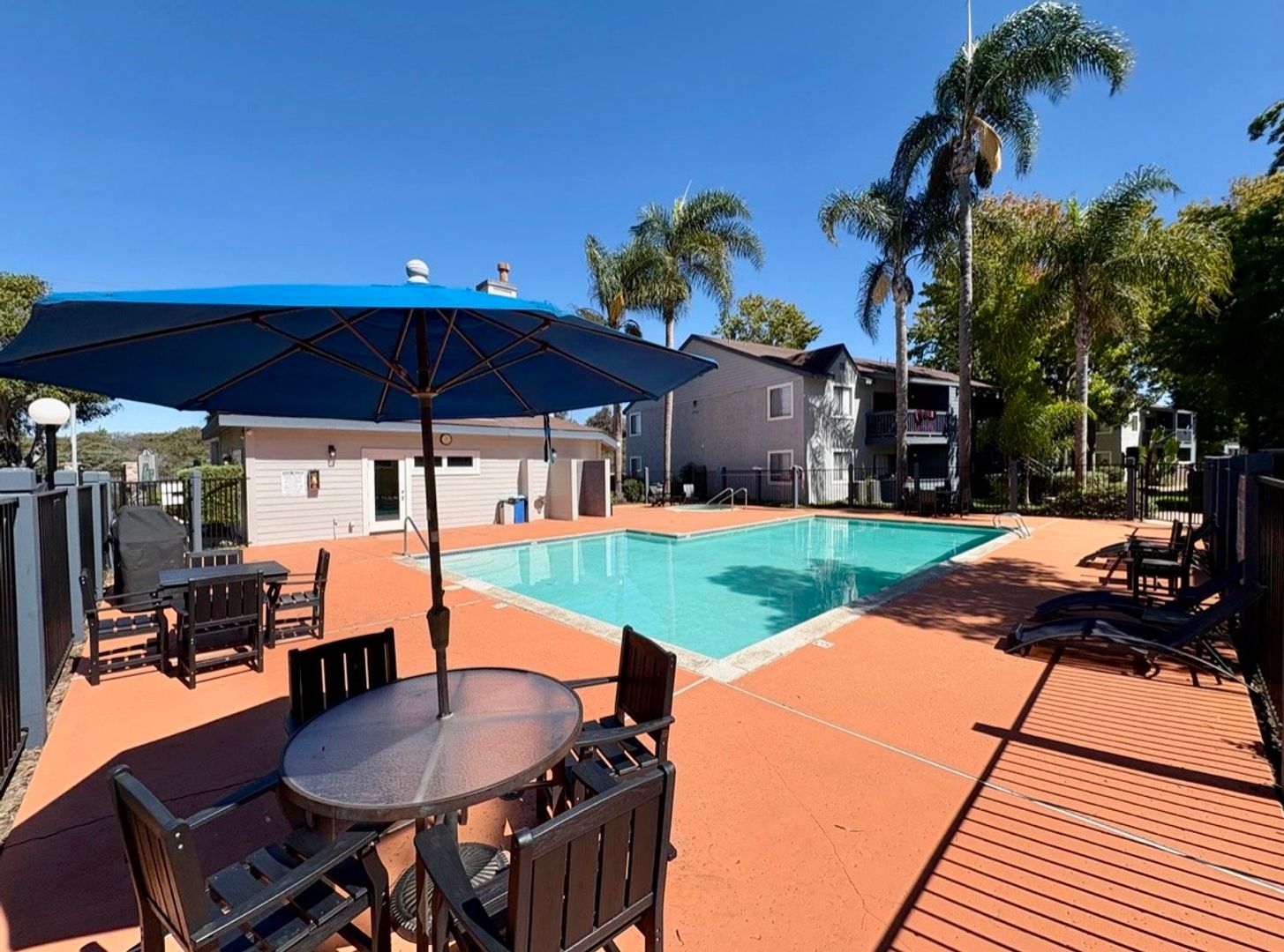 This is a gated community featuring premium amenities, including a pool, jacuzzi, fitness center, on-site laundry, playground, BBQ and picnic areas, a dog park, and assigned carport parking.